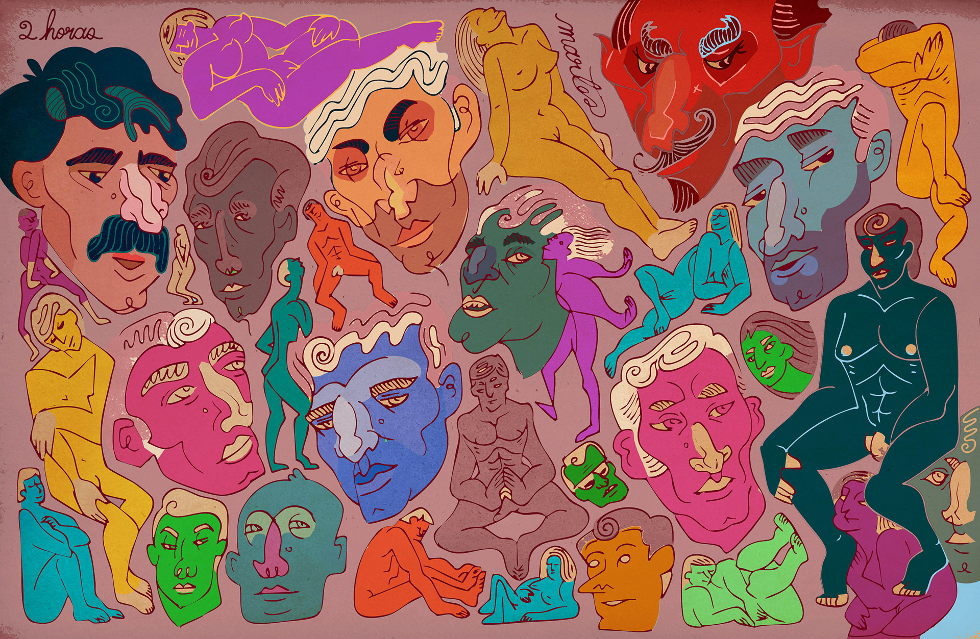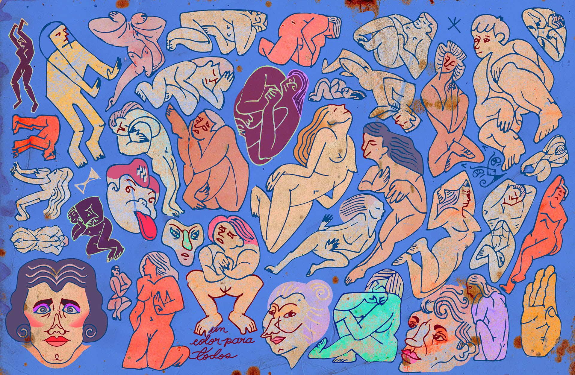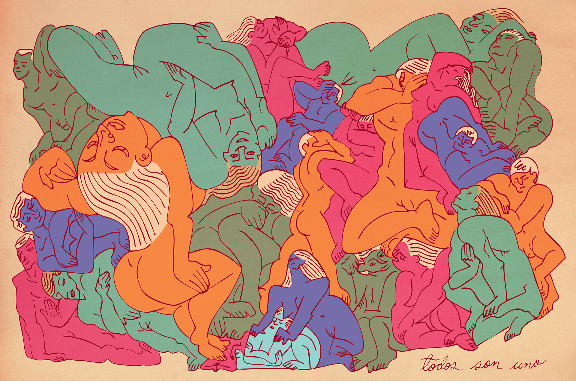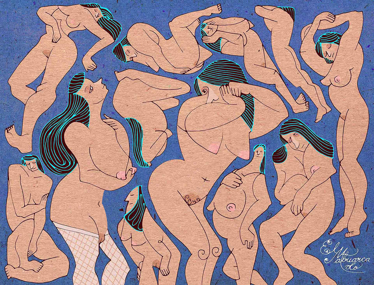 Es entonces cuando el ojo interviene, buscando significado donde antes solo había desorden. Como si siempre hubieran estado ahí, las figuras comienzan a emerger del laberinto de líneas. Cuerpos desnudos, entrelazados en una danza silenciosa, atrapados en una dimensión que solo existe cuando alguien logra verla. La tinta los rescata, definiendo los contornos de su existencia.