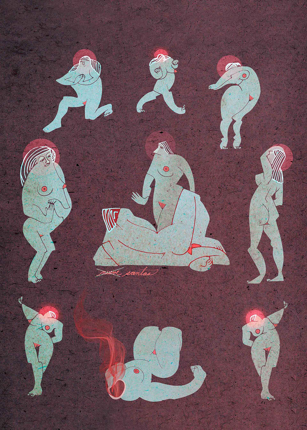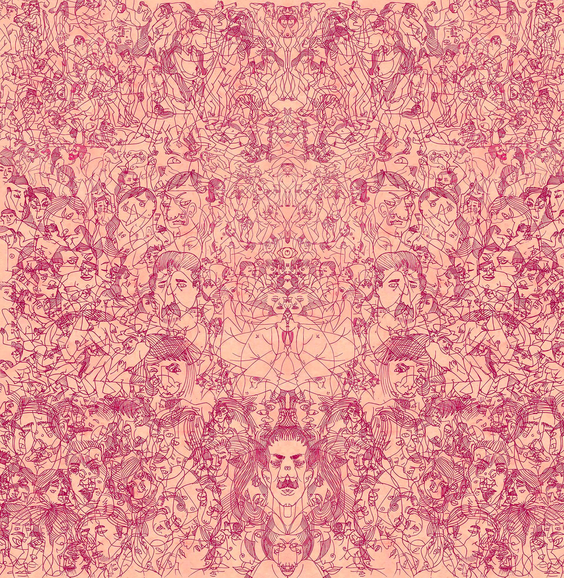 It is then that the eye intervenes, seeking meaning where there was once only disorder. As if they had always been there, figures begin to emerge from the labyrinth of lines. Naked bodies, intertwined in a silent dance, trapped in a dimension that only exists when someone manages to see it. The ink rescues them, defining the contours of their existence.
